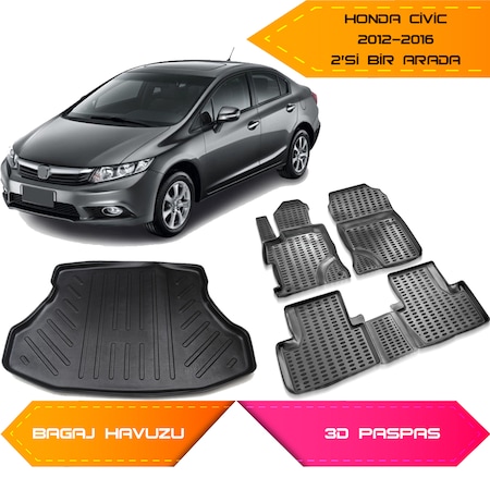 Leader Honda Civic Fd6 3d Havuzlu Paspas 2007 2012 Bagaj Havuzu 3d Ikili Set Trendyol