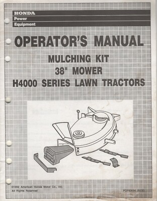 1992 Honda Mulching Kit 38 Mower H4000 Lawn Tractor Operator S Manual 140 Ebay