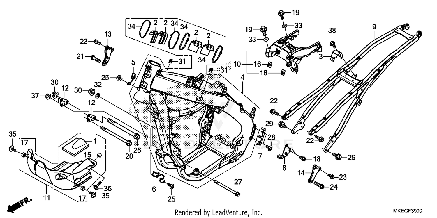 2020 Honda Frame Crf450lac Vin Jh2pd111 Lk100001 Parts Diagram
